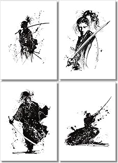 Kunstdruck Din A4 4er Set ohne Rahmen - Samurai Krieger Japan Schwert Aquarell schwarz Bild Druck Poster Bild