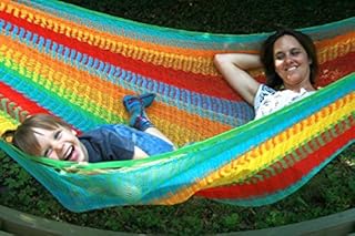 MacaMex MA-00220 Hängematte, Mexikanische Netzhängematte Doppelhängematte 2 Personen 220 kg, 410 x 200 x 150 cm, bunt