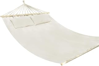 Novonova Hängematte mit Zwei Kissen, Stabhängematte für Zwei Personen,Doppelhängematte bis 150 kg belastbar, super leichte Hängematte für Terrasse, Garten und Camping, Beige