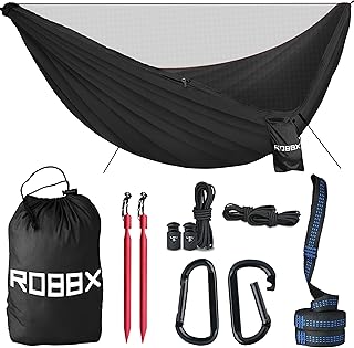ROBBX® Hängematte Outdoor mit Moskitonetz für 2 Personen | 300kg Traglast | Doppelhängematte mit Befestigungs-Set | Nylon Camping Reisehängematte | 290x140cm