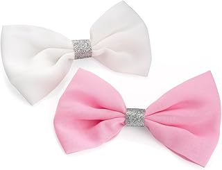 Ein Paar Haarklammern mit Schleife und Glitzer in der Mitte, einmal in Rosa und einmal in Weiß