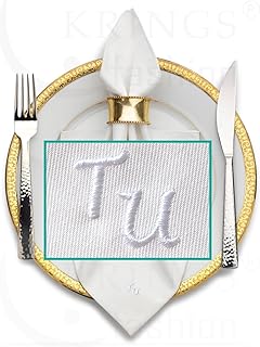 Stoffserviette mit Monogramm hochwertig bestickt, Serviettenfarbe weiß, Größe 50 x 50 cm, Stickfarbe wählbar