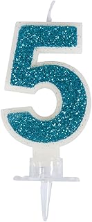 Rayher 31603000 Zahlenkerze 5, blau/glitter, mit Halter, Kuchendekoration für Geburtstage