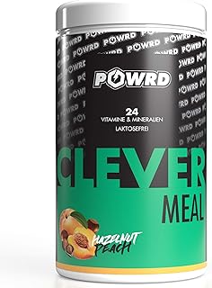POWRD® CLEVER MEAL Shake - 500g – Mahlzeitenersatz Shake zum Abnehmen - Diät Shake 24 Vitamine & Mineralien (Haselnuss Pfirsich)