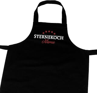 Herz & Heim® Schwarze Schürze - Sternekoch - mit Wunschnamen bedruckt
