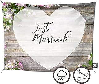HERZALLERLIEBST - Hochzeitsherz liebevoll designt mit Schriftzug „Just married", ausgeschnittenes Herz als Durchgang für das Brautpaar ; HOCHWERTIG - Hochzeitslaken zum Ausschneiden fein glänzender Stoff in bester Verarbeitung, vollständig umsäumt, mit 4 Schlaufen für sicheren Halt STANDESAMT ÜBERRASCHUNG: Das Spalier für das Brautpaar gehört zu jeder liebevoll gestalteten Hochzeit. Unser Bettlaken zum Ausschneiden, ist der perfekte Begleiter für diesen Hochzeitsbrauch. EXTRA GROß: Unser Hochzeitstuch misst 240 x 180 cm und ist ca. 20% größer als herkömmliche Herzlaken.