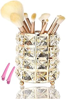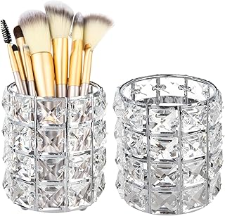 Brand: Feyarl 178 ratings Save 14% Lowest price in 30 days Color: Silver About this item Makeup Brush Holder Material: Metal Plated with Square Crystal Makeup Brush Organizer Dimension: 3.54 x 3.54 inch (9 x 9 cm); Height: 3.8inch/9.8cm; Weight: .93lb/422g Durable Crystal Brush Holder : More tough and Large capacity. Material: the crystal brush holder is made of high-quality metal, glass and covered with square crystal, it shines and sparkles, solid and very stable Size: 8.5 x 8.5 x 12 cm; weight: 0.99 lb/450 g Scratch-resistant base: the make-up holder has four support points and a scratch-resistant base that can prevent scratches and protect your table