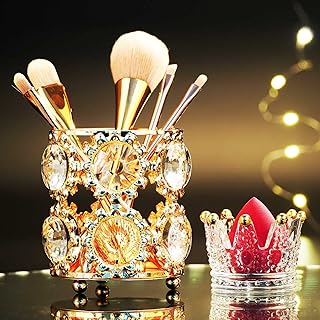DARUITE Pinselhalter Gold, Kristall Deko Make Up Pinsel Organizer Schmink Aufbewahrung Halter Schminktisch Zubehör