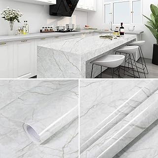 Sunm Boutique Marmor Folie Selbstklebend Möbelfolie Tapete Weiß Marmor Klebefolie Wasserdicht Tapete Dekorfolie für Möbel Küche Wand Schränke