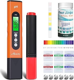 PH Messgerät, PH Teststreifen x 50, Temperatur Messgerät 3 in 1 Set, Hoher Genauigkeit (ATC) Wassertester für Pool, Trinkwasser pH-Wert, Chlor, Alkalinität, Algizid und Wasserhärte