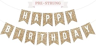 Vorbespannte "Happy Birthday"-Banner – kein Basteln – Gold Glitzer Geburtstag Party Banner – Vorbespannte Girlande auf 1,8 m langen Strängen – Gold Geburtstag Party Dekorationen & Dekor