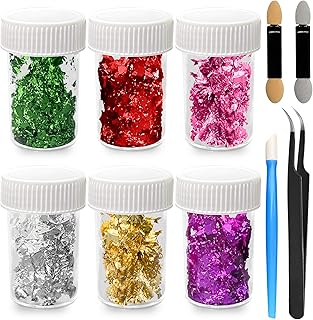 Aslanka 6 Flaschen Metallic Folien Flocken, Bunte Blattgoldflocken für Vergoldungen, Kunstprojekte und handwerkliche, DIY Nagel Kunst Dekorationen