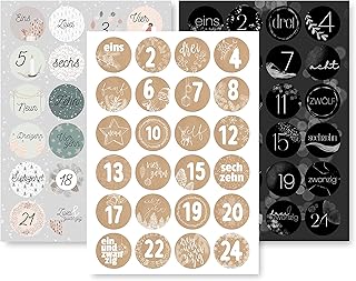 Adventskalender Aufkleber Set (Zahlen 1-24) - 3 x 24 Sticker für Kalender zum selber basteln für Weihnachten - Adventskalenderzahlen Etiketten selbstklebend - Zahlenaufkleber - Nummern Papiertüten