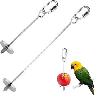 Bubuyun 2 Stück Vogel Fruchthalter Edelstahl Papagei Obst- und Gemüsehalter Gemüse Fleisch Lebensmittel Stick Halter Interessant Futterspieß Gemüsehalter Papagei Obst Futterhäuschen für Vögel