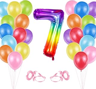 Luftballon 7 Geburtstag Bunt, Geburtstag Deko Mädchen Jungen, Gradient Ballon 7 Deko zum Geburtstag, Happy Birthday Riesen Folienballon Zahl 7 mit Latex Helium Luftballons und Bändern